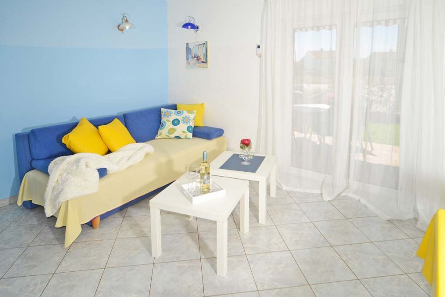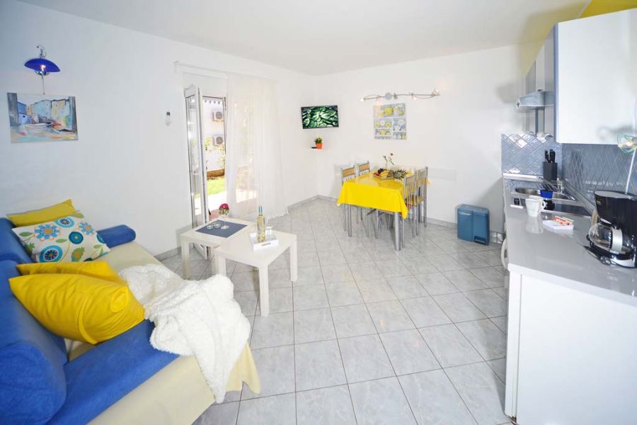 Diese einladende Ferienwohnung am Meer befindet sich im Erdgeschoss des Hauses und verfügt über einen schönen kleinen Garten und eine Terrasse mit Sitzmöbeln. Das Schlafzimmer ist mit einem großzügigem Doppelbett ausgestattet. Im lichtdurchfluteten Wohnzimmer befindet sich ein Funktionssofa, dass sich zu einer komfortablen Schlafcouch für 2 Personen umwandeln lässt. Die Einbauküche ist vom Inventar mit allem ausgestattet, was man zum Kochen des Lieblingsgerichtes benötigt.