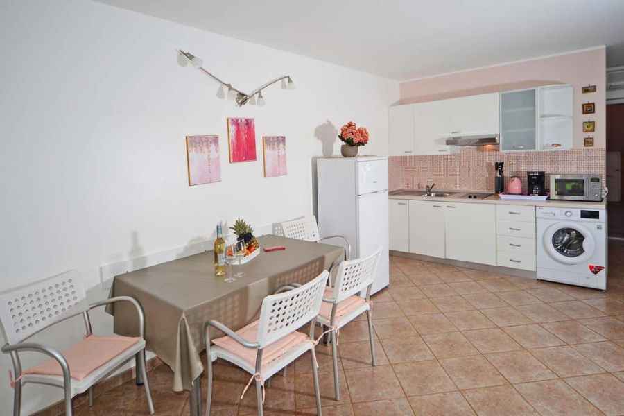 Die leuchtende Pinky Ferienwohnung befindet sich im Erdgeschoss des Hauses und verfügt über einen schönen privaten Garten mit Grill und zwei Terrassen mit Sitzmöbeln. Das Schlafzimmer ist mit einem großzügigem Doppelbett und einem zusätzlichen Einzelbett ausgestattet. Im lichtdurchfluteten Wohnzimmer befindet sich ein Funktionssofa, dass sich zu einer komfortablen Schlafcouch für 2 Personen umwandeln lässt. Die Einbauküche ist vom Inventar mit allem ausgestattet, was man zum Kochen des Lieblingsgerichtes benötigt.